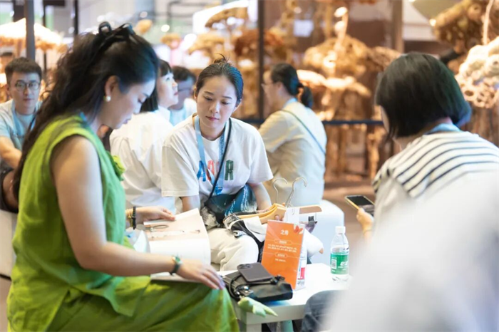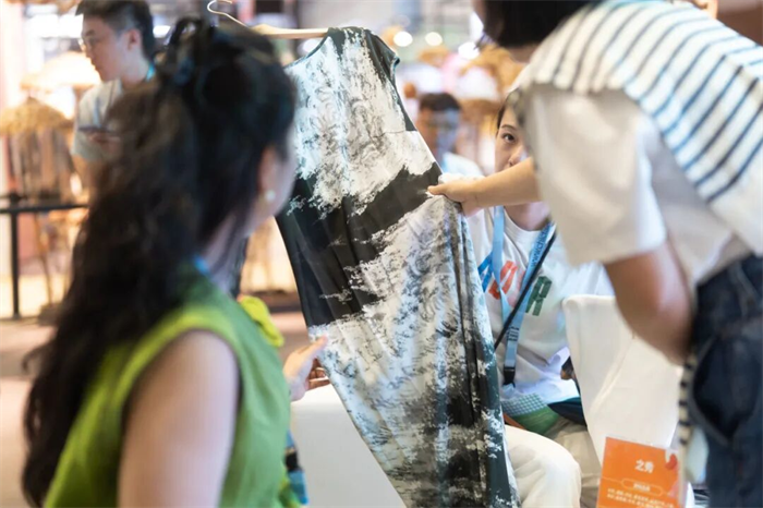 淘系、小红书,抖音等线上品牌、博主,也是CHIC商贸的主力军。知名抖音带货达人、网信办认证的优质主播小水深度参与CHIC十几届展会,展商不停地推陈出新,产品材质来源的可追溯与透明,让小水这样拥有大批忠实粉丝的主播安心、放心。“我们的粉丝以中高收入女性为主,她们眼光挑剔,超有品位,逛了一圈展会我一眼就发现了好东西。”他坦言相较出货速度,更在意“慢慢做、好好做”的东西,看重不赶工、质检严、跟单认真的“慢公司”。这次他发现很多展商主推带有非遗元素的产品,扎染、天然染料、传统手工…这些国潮服装服饰不仅颜值高,拉满故事感与氛围感,完全踩中了当下消费者的审美点和文化自信。展会每一天,小水带着团队慢慢逛展、细致选品。